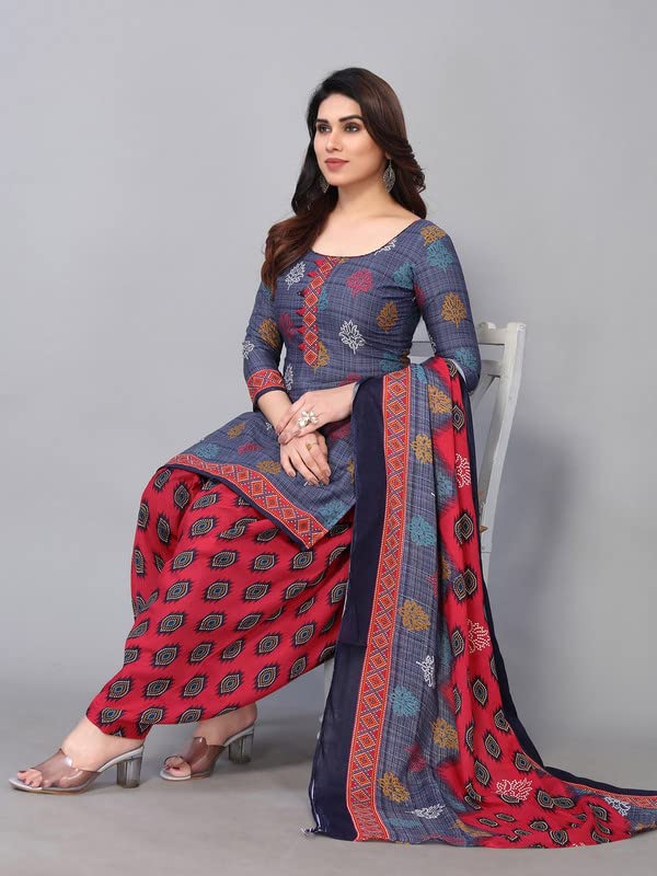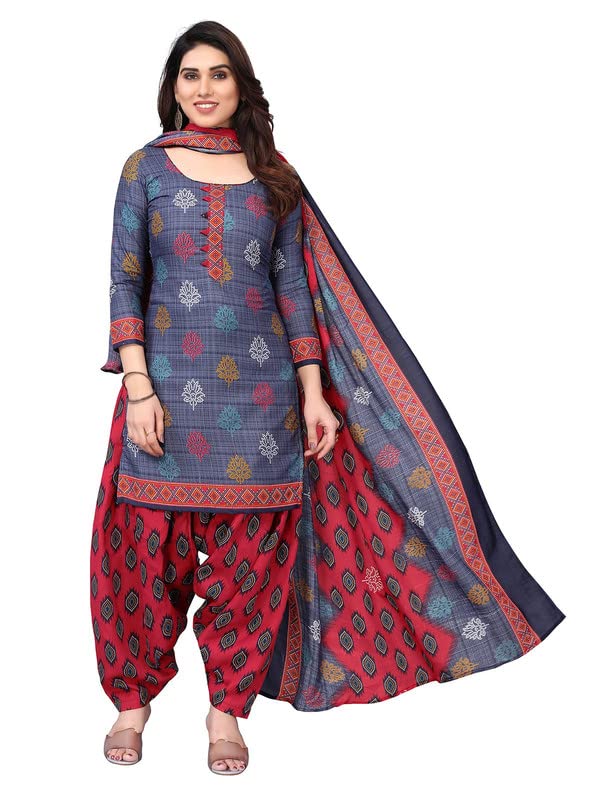 Size Details :: Top Length : 2.00 Mtr || Bottom Length : 2.20 Mtr || Dupatta Length :2.00 Mtr Fabric Details :: Top : Poly Cotton || Bottom : Poly Cotton || Dupatta : Poly Cotton Color Details :: Top : Grey & Multi || Bottom : Red & Multi || Dupatta : Red & Multi Dress Work : Printed || Type : Unstitched Need To Stitch As Per Any Size And Fit Package Contains : 1 Top || 1 Bottom || 1 Dupatta