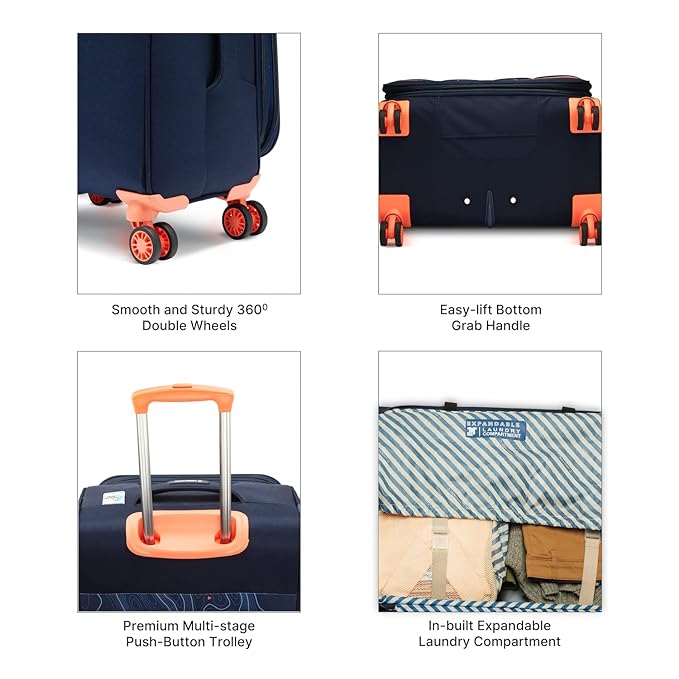 - 8-WHEEL TROLLEY BAG- Upgrade your travel experience effortlessly with our stylishly printed trolley bags, featuring an innovative 8-wheel design that ensures unparalleled mobility and stability. Enjoy seamless movement and enhanced ease throughout your journeys courtesy of these smooth double wheels.